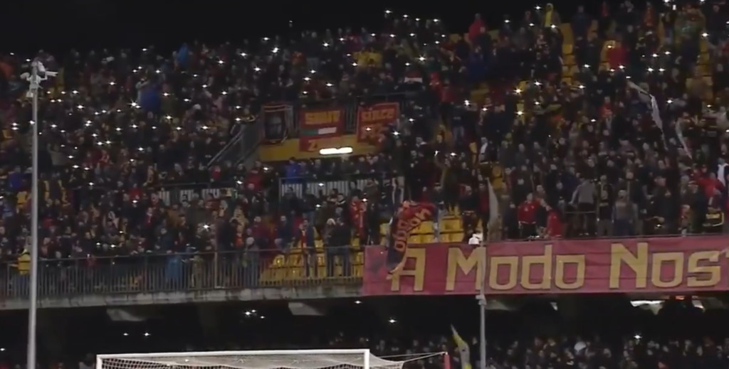 E allora i tifosi si lasciano andare ad una “fiaccolata” smart: tutti con le torce degli smartphone accesi e cartolina degna di un grande concerto. La partita è ripresa poi alle 19.15 (circa 20 i minuti di ritardo):