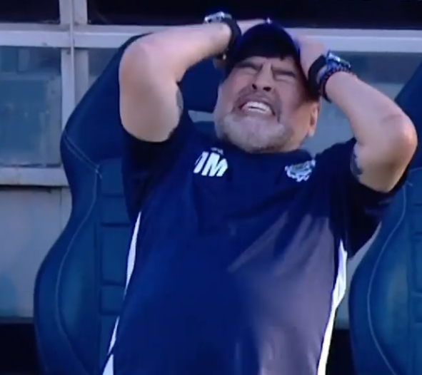 Diego Armando Maradona non è mai banale e anche le sue reazioni in panchina sono molto curiose.