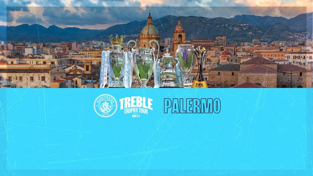 I cinque trofei vinti dal Manchester City nell’ultima storica stagione arrivano a Palermo per l’unica tappa italiana del Treble Trophy Tour, che sta toccando le più importanti città del mondo (da New York a Shangai, passando per Abu Dhabi, Mumbai, Melbourne, San Paolo e tante altre).