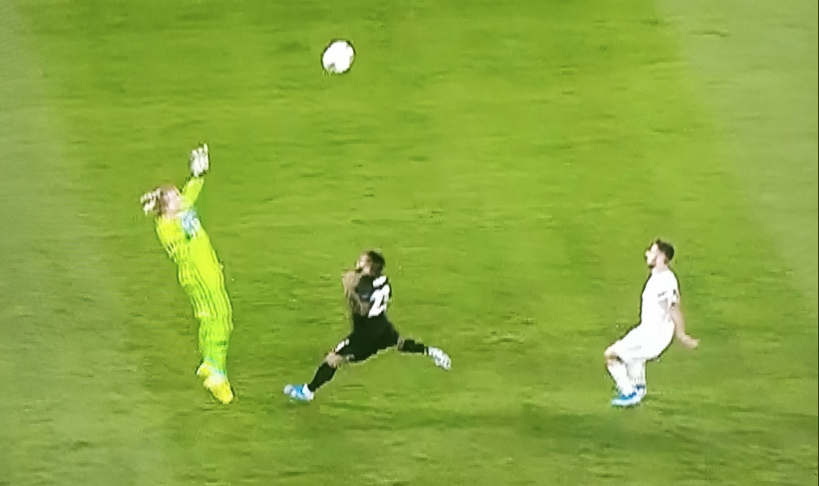 Il portiere del Beskitas (al 14′ del primo tempo) esce dall’area sul rinvio profondissimo del portiere avversario con l’idea di spazzare via di testa e anticipare Sporar. Ma Karius sbaglia completamente i tempi e viene scavalcato dal pallone, travolgendo anche un compagno: Sporar può segnare a porta vuota.