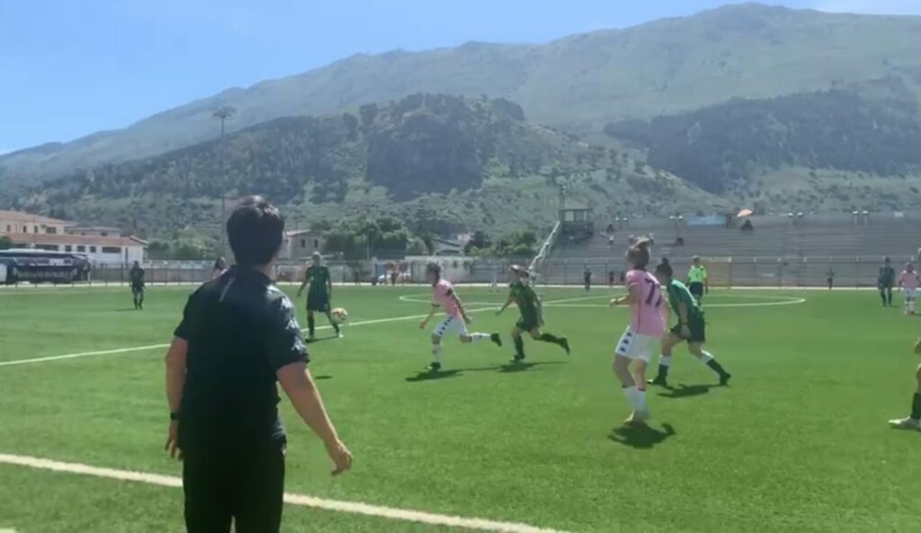 Nel primo tempo, le rosanero sono travolgenti: al 12esimo Dragotto chiude il triangolo con Lazzara e va a segno piazzando il pallone sotto l’incrocio. Al 24esimo minuto arriva il raddoppio: azione insistita, tiro in area di Cusmà respinto e Coco va a segno col pallonetto dal limite dell’area. E al 37esimo minuto è già tris: respinta corta del portiere sul tiro di Coco e tap-in vincente di Dragotto.
