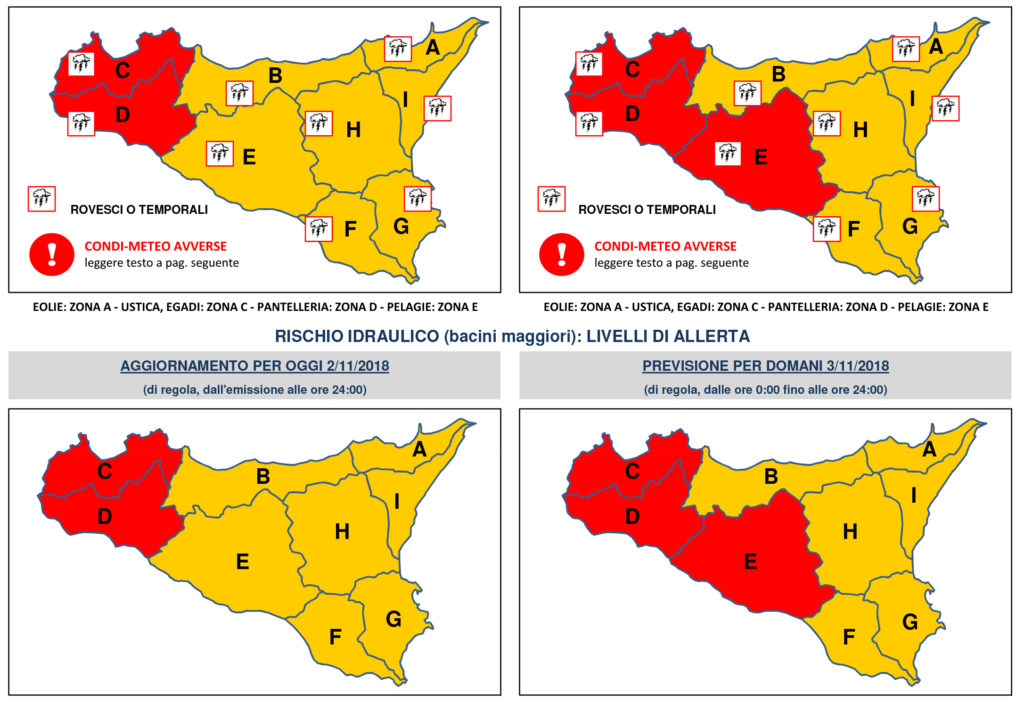 Questo quanto diramato dalla Protezione Civile: “Previste precipitazioni diffuse, a prevalente carattere di rovescio o temporale, sui settori occidentali e versanti meridionali centrali della Sicilia, con quantitativi cumulati da elevati a molto elevati; da sparse a diffuse, a prevalente carattere di rovescio o temporale, sul resto della Sicilia con quantitativi cumulati generalmente moderati, più rilevantisui versanti ionici della Sicilia nord-orientale”.