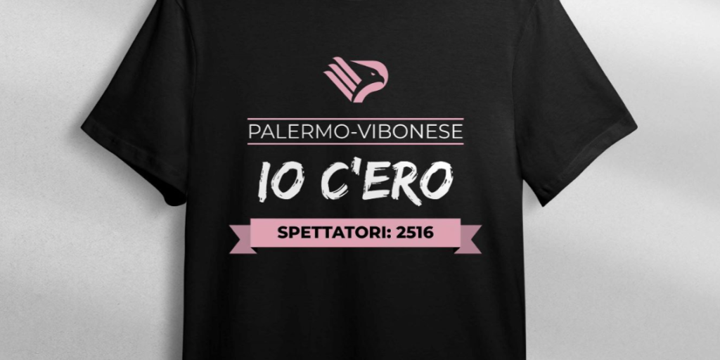“Palermo-Vibonese, io c’ero: spettatori 2516”. Il Palermo FC annuncia la produzione e distribuzione di una maglia ‘celebrativa’ per premiare gli spettatori presenti nella partita casalinga dei rosanero in cui si è registrato uno dei peggiori dati di pubblico in Serie C nella stagione appena conclusa (il dato peggiore in assoluto in realtà è stato registrato contro il Taranto ma si trattava di un turno infrasettimanale).