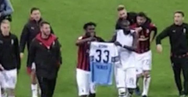 “Sono dispiaciuto perché ho scambiato la maglia per mettere fine alla questione, fomentare odio non è sport ma un segno di debolezza”, twitta Acerbi, mentre Bakayoko (rimproverato anche dal suo allenatore, Gattuso) prova a giustificarsi: “Le mie scuse più sincere a @francescoacerbi88 Volevo semplicemente scherzare, niente di più. Massimo rispetto per tutti”.