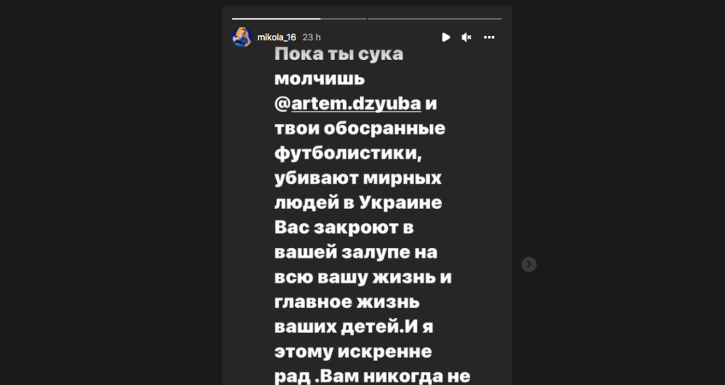 Un’accusa (rivolta anche ai compagni di nazionale di Dzyuba) che arriva via Instagram e che presenta toni molto duri, al punto da insultare l’attaccante russo. Mykolenko si era già associato a un video messaggio dei giocatori ucraini al grido di “The truth will defeat propaganda!” (“la verità sconfiggerà la propaganda”).