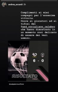 accardi-instagra Continue ReadingPrevious Accardi: “Onore al Corigliano e ai loro tifosi, uomini veri” / FOTO COMMENTA / VAI AI COMMENTILascia un commento Annulla rispostaIl tuo indirizzo email non sarà pubblicato. I campi obbligatori sono contrassegnati *Commento * Nome * Email * Sito web Salva il mio nome, email e sito web in questo browser per la prossima volta che commento. Δ