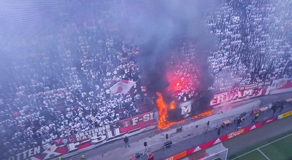 Paura prima della grande classica del calcio olandese. Ajax – Feyenoord con alcuni minuti di ritardo a causa di un problema sugli spalti della Johna Cruijff Arena: uno striscione aveva preso fuoco.