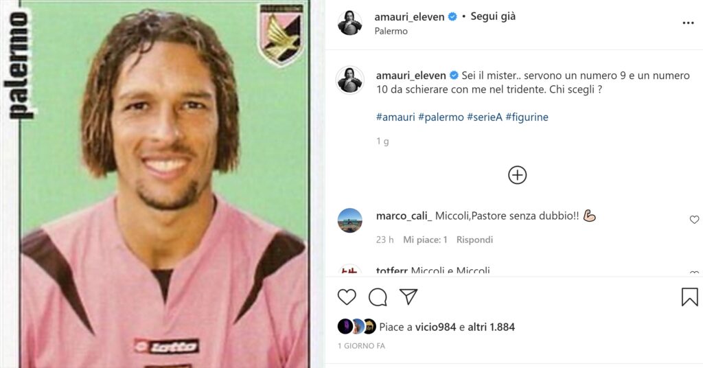 Una figurina diventa l’ennesimo manifesto d’affetto per Palermo e il Palermo. L’ha pubblicata Amauri Carvalho de Oliveira, o più semplicemente Amauri, che ha condiviso su Instagram una sua immagine Panini risalente ai tempi del club di viale del Fante.