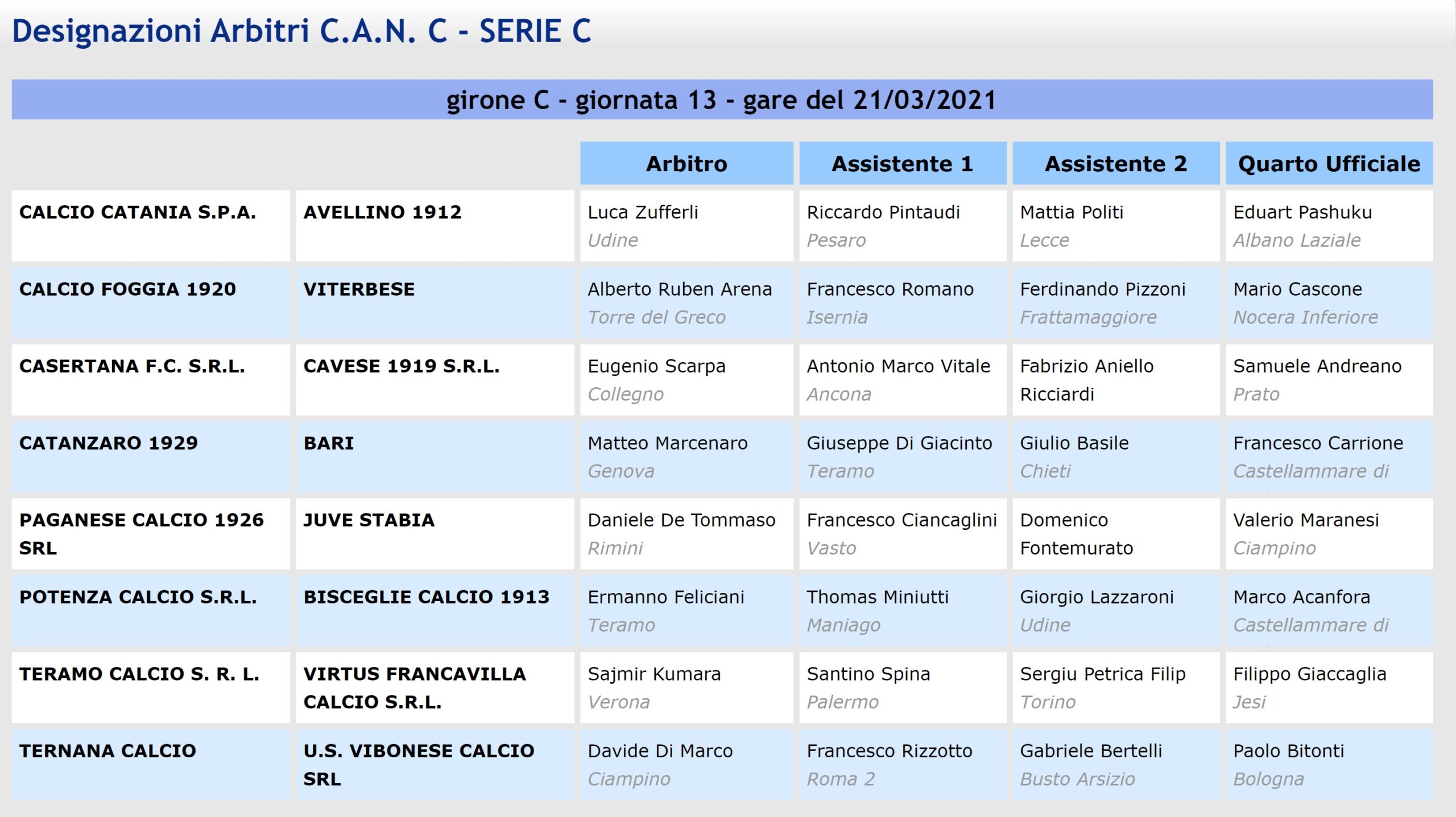 Arbitri C Continue ReadingPrevious Arbitri Serie C girone C, le designazioni della 32a giornata COMMENTA / VAI AI COMMENTILascia un commento Annulla rispostaIl tuo indirizzo email non sarà pubblicato. I campi obbligatori sono contrassegnati *Commento * Nome * Email * Sito web Salva il mio nome, email e sito web in questo browser per la prossima volta che commento. Δ
