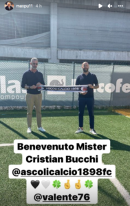 Dopo Andrea Sottil, l’Ascoli sceglie Cristian Bucchi. Sarà il tecnico ex Benevento (reduce dall’esperienza in C con la Triestina) il nuovo allenatore dei bianconeri: a dare l’annuncio – prima ancora del club – è il patron Massimo Pulcinelli con una storia sul profilo Instagram in cui mostra tecnico e staff per le prime foto di rito.