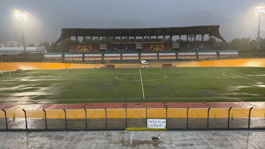 La sfida era iniziata regolarmente al Velodromo “Paolo Borsellino”, ma un violento acquazzone abbattutosi su Palermo ha presto reso il terreno di gioco impraticabile. Il campo si è trasformato in pochi minuti in un pantano, mettendo a rischio la regolarità del match e la sicurezza dei giocatori.
