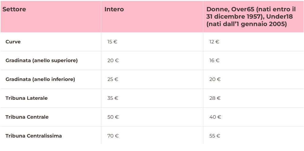 Ecco il dettaglio dei prezzi dei biglietti (fonte palermofc.com):