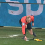 Intorno al 70′ minuto di gioco uno degli assistenti dell’arbitro è stato colpito alla testa: è stato lanciato dalle tribune infatti un bicchiere di plastica contenente birra (gesto immediatamente condannato da entrambi i club). Nessuna grave conseguenza per l’ufficiale di gara, ma la decisione dell’arbitro è stata quella di sospendere immediatamente la partita e ordinare il rientro delle due squadre negli spogliatoi. Dopo circa 10/15 minuti è arrivata la decisione definitiva: il match non riprenderà.
