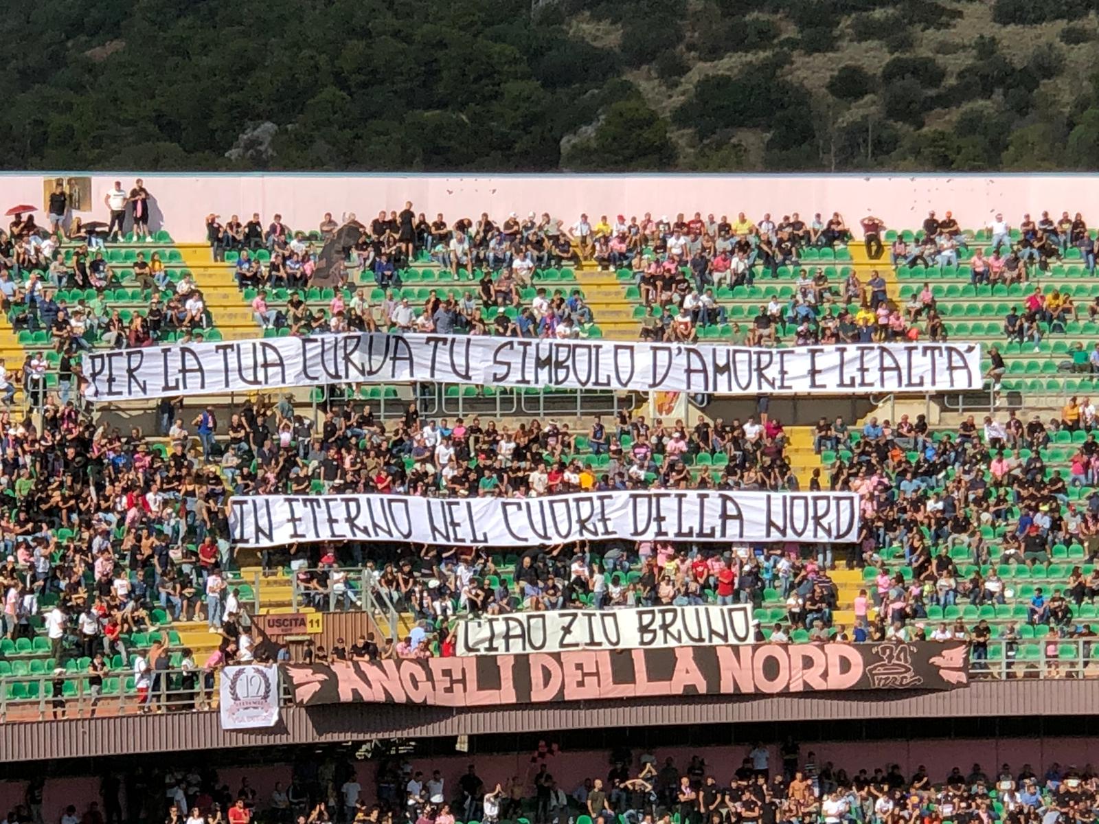 I tifosi ricordano Bruno Palumbo. Poco prima di Palermo – Cittanovese, la tifoseria ha esposto diversi striscioni per ricordare lo storico supporter rosanero.