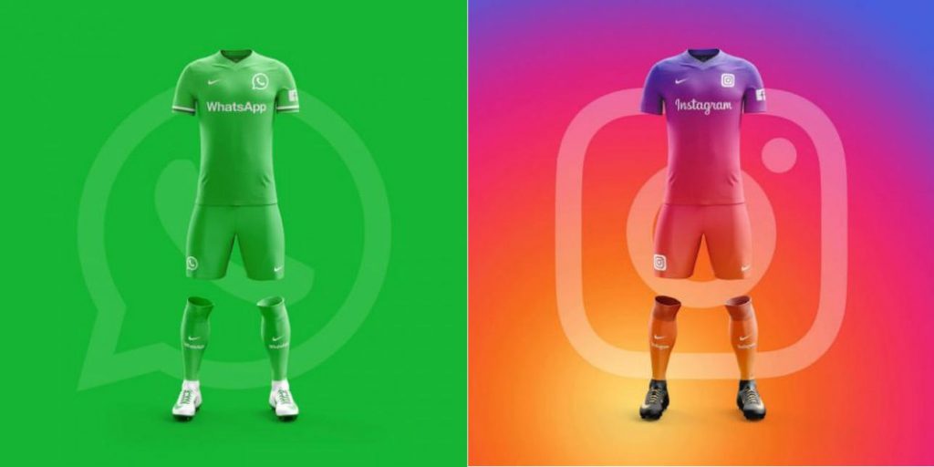 Ogni social network ha una divisa da gioco diversa, con i colori sociali attinenti al logo del proprio servizio di messaggistica. Da Whatsapp a Twitter, da Facebook Messenger a Instagram, passando per Youtube o Shazam.