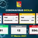 Di seguito il nuovo aggiornamento relativo ai casi di Coronavirus riscontrati nelle varie province della Sicilia: i dati sono aggiornati a oggi (17 marzo 2021), così come segnalati dalla Regione Siciliana all’Unità di crisi nazionale.