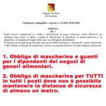 Scatta da giorno 9 aprile, infatti, l’obbligo per i lavoratori dei negozi di alimentari di portare sempre la mascherina. È inoltre obbligatorio indossare i guanti o, in alternativa, il lavaggio frequente delle mani con disinfettante.