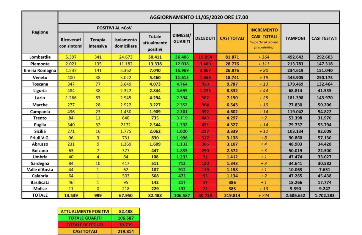 Tabella 11 maggio Continue ReadingPrevious Coronavirus in Italia, bollettino 11 maggio: 744 nuovi casi, +1.401 guariti COMMENTA / VAI AI COMMENTILascia un commento Annulla rispostaIl tuo indirizzo email non sarà pubblicato. I campi obbligatori sono contrassegnati *Commento * Nome * Email * Sito web Salva il mio nome, email e sito web in questo browser per la prossima volta che commento. Δ