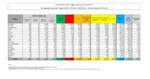 Il Ministero della Salute ha comunicato i dati del nuovo bollettino nazionale sull’emergenza Coronavirus in Italia, aggiornati a oggi domenica 27 settembre.