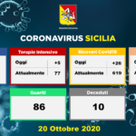 Questo il quadro riepilogativo della situazione nell’Isola, aggiornato a oggi martedì 20 ottobre, in merito all’emergenza Coronavirus, così come comunicato dalla Regione Siciliana all’Unità di crisi nazionale.