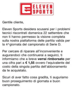 Dopo i disservizi e i problemi delle prime giornate, Eleven Sports corre ai ripari e conferma che gli utenti abbonati al pacchetto delle partite del Palermo avranno diritto al rimborso della partita di domenica 22 settembre.