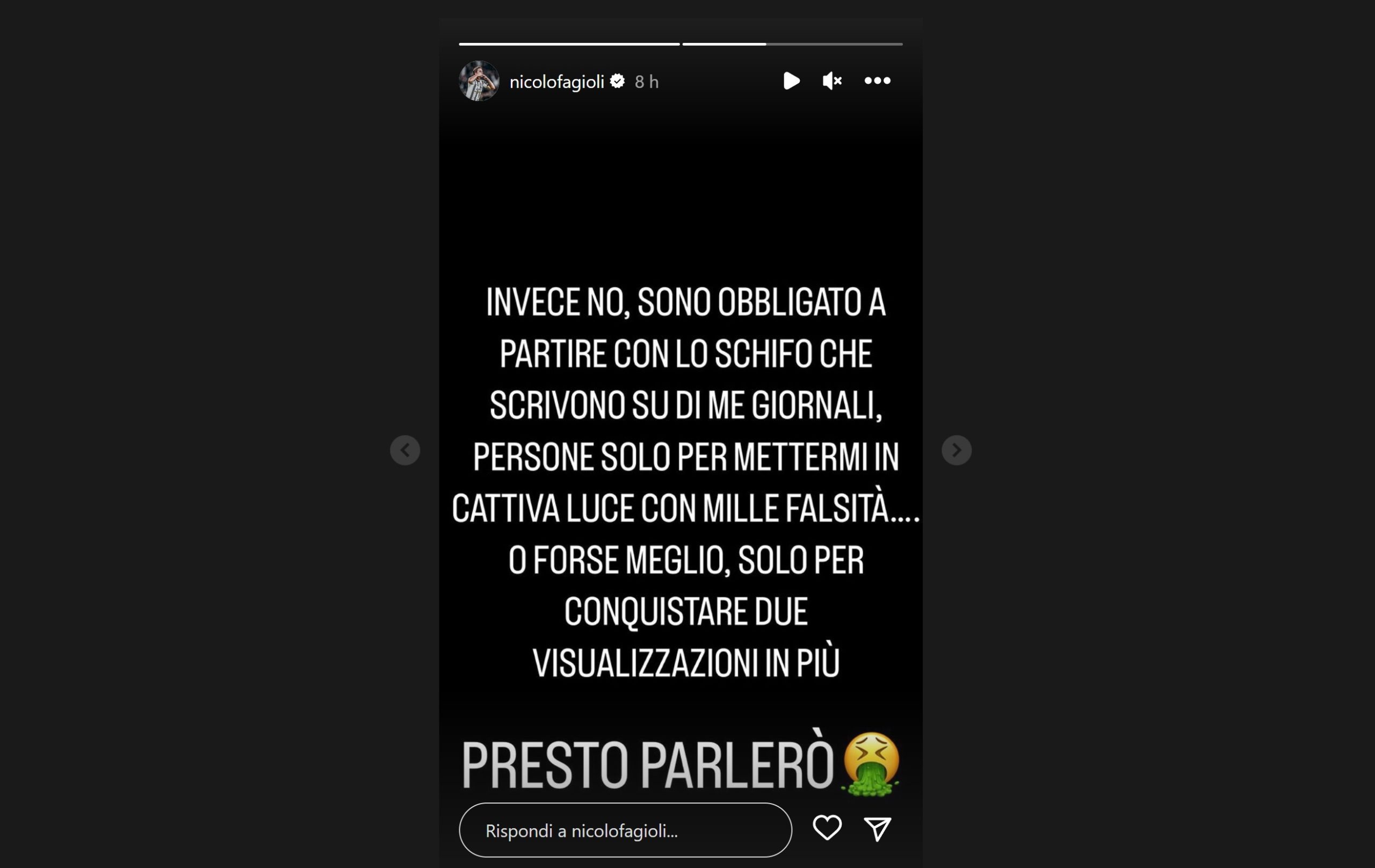 Inizia così il messaggio che il centrocampista della Juventus Nicolò Fagioli, al centro dello scandalo sulle scommesse illecite, ha pubblicato sui suoi canali social.