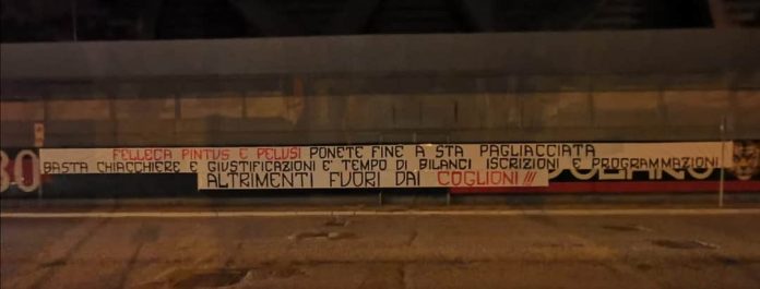 Un gruppo di tifosi ha affisso, nei pressi dello stadio “Pino Zaccheria”, uno striscione con un messaggio chiaro: “Felleca, Pintus e Pelusi ponete fine a sta pagliacciata, basta chiacchiere e giustificazioni, è tempo di bilanci, iscrizioni e programmazioni, altrimenti fuori dai…”.