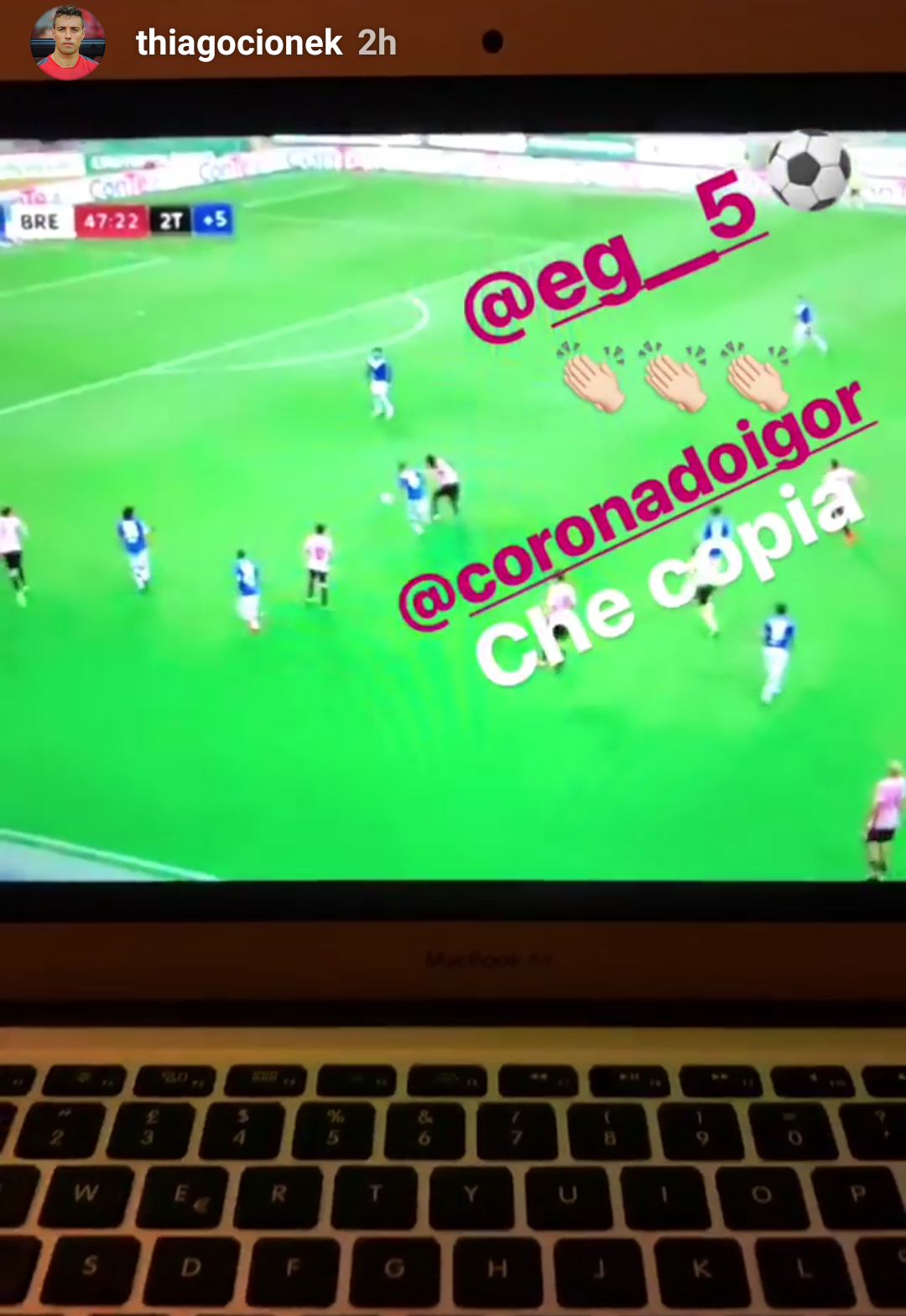 Il difensore posta su Unstagram la sua felicità per le reti segnate da Chochev (“grande Chocho”) e si esalta per il gol di Gnahoré con tanto di battuta: “Coronado, che copia”.