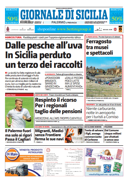 giornale Continue ReadingPrevious FOTO – Le prime pagine dei quotidiani, 13 agosto COMMENTA / VAI AI COMMENTILascia un commento Annulla rispostaIl tuo indirizzo email non sarà pubblicato. I campi obbligatori sono contrassegnati *Commento * Nome * Email * Sito web Salva il mio nome, email e sito web in questo browser per la prossima volta che commento. Δ