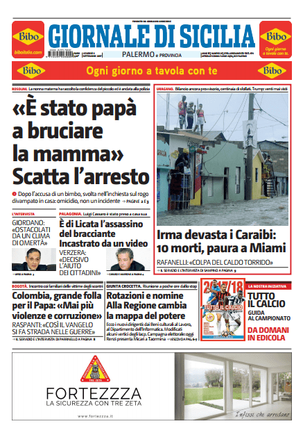 prima-pagina-giornale-sicilia-8-settembre Continue ReadingPrevious FOTO – Le prime pagine dei quotidiani, 8 settembre COMMENTA / VAI AI COMMENTILascia un commento Annulla rispostaIl tuo indirizzo email non sarà pubblicato. I campi obbligatori sono contrassegnati *Commento * Nome * Email * Sito web Salva il mio nome, email e sito web in questo browser per la prossima volta che commento. Δ