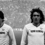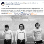 Ed eccolo il post di Manuela: “Grande soddisfazione per il successo ottenuto da un grande mister, un amico da sempre per me e per la mia famiglia, quello che ci voleva in questo momento così difficile per tutto noi. Grande Atalanta e grande Gian Piero Gasperini”. La foto è un altro flash sul passato. Gasperini poco più che ventenne, accanto a Gianni De Rosa e al portiere Cesidio Oddi. la maglia “targata” Vini Corvo, sullo sfondo uno stadio – la Favorita – con ancora un solo anello.