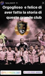 “Orgoglioso e felice di aver fatto la storia di questo grande club”. E’ il messaggio di Luca Toni pubblicato su una sua “Storia” di Instragam.
