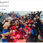 Il Catania si gode la vittoria nel derby di Sicilia. Tanti festeggiamenti nel post partita, con tanto di foto pubblicata nei profili social con la lavagnetta luminosa che segna i numeri 2 e 0. La didascalia scelta è “Catania – Palermo 2 – 0. Campioni di Sicilia“.