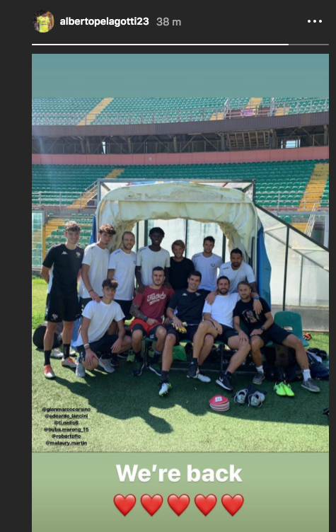Proseguono gli allenamenti pre-ritiro dei giocatori del Palermo, che al “Barbera” si tengono in forma in attesa della ripresa vera e propria delle sedute. Nel frattempo anche i “vacanzieri” rientrano alla base (tra cui Lancini e Martinelli) e Pelagotti carica la squadra con una foto di gruppo e una storia Instagram: “We’re back (siamo tornati, ndr.)”. ——>RITIRO PALERMO: SLITTAMENTO AL 24 AGOSTO