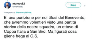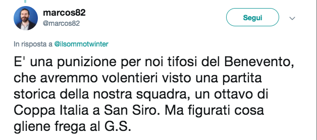 schermata-2018-12-27-alle-18-20-53 Continue ReadingPrevious Inter – Benevento a porte chiuse. I tifosi campani: “Perché punire noi?” / FOTO COMMENTA / VAI AI COMMENTILascia un commento Annulla rispostaIl tuo indirizzo email non sarà pubblicato. I campi obbligatori sono contrassegnati *Commento * Nome * Email * Sito web Salva il mio nome, email e sito web in questo browser per la prossima volta che commento. Δ