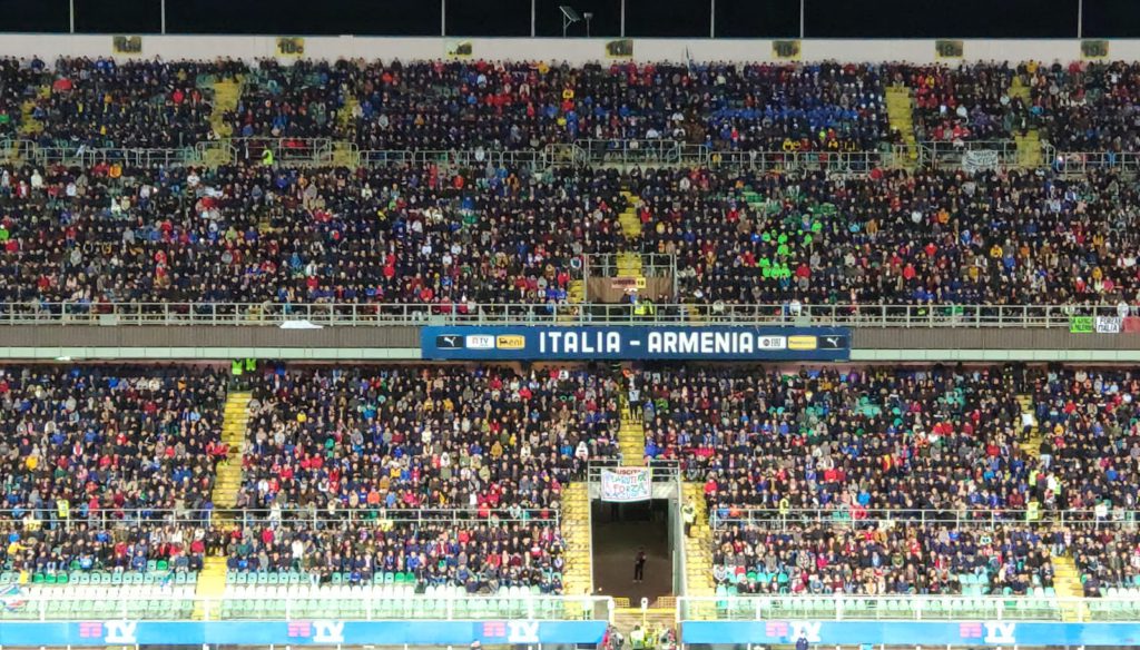 Il Renzo Barbera si tinge d’azzurro per Italia – Armenia, ultimo match delle qualificazioni a Euro 2020 per la nazionale che (nonostante fosse già certa del primo posto del girone) ha giocato in una bella cornice di pubblico. Sugli spalti dell’impianto di viale del Fante sono 27.800 gli spettatori giunti per assistere alla partita.