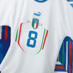 La Figc ha annunciato la nuova maglia “away” delle nazionali di calcio realizzata da Puma (che a fine anno passerà il testimone ad Adidas, ndr.). La maglia da trasferta – bianca, realizzata con materiali 100% riciclati – presenta ora un colletto azzurro e dei dettagli tricolore sulle maniche ma soprattutto intorno al numero di maglia al centro della divisa, dove trova posto anche il logo della federazione.