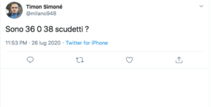 Schermata 2020-07-26 alle 23.55.59 Continue ReadingPrevious Juventus, ma gli scudetti sono 36 o 38? Riparte il “duello” social / FOTO COMMENTA / VAI AI COMMENTILascia un commento Annulla rispostaIl tuo indirizzo email non sarà pubblicato. I campi obbligatori sono contrassegnati *Commento * Nome * Email * Sito web Salva il mio nome, email e sito web in questo browser per la prossima volta che commento. Δ