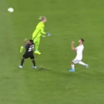 Il portiere del Beskitas (al 14′ del primo tempo) esce dall’area sul rinvio profondissimo del portiere avversario con l’idea di spazzare via di testa e anticipare Sporar. Ma Karius sbaglia completamente i tempi e viene scavalcato dal pallone, travolgendo anche un compagno: Sporar può segnare a porta vuota.