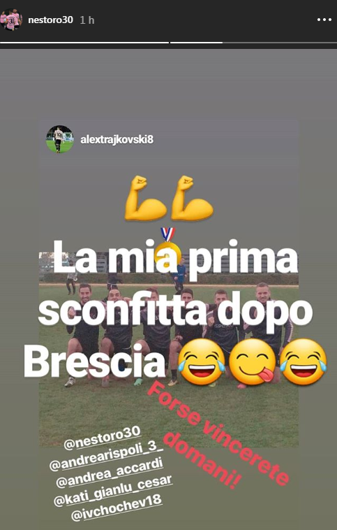 Trajkovski, infatti, ha postato sulle proprie storie di Instagram una foto che lo ritrae insieme alla sua mini-squadra composta da Bellusci, Salvi, Murawski, Fiordilino e Puscas, festanti dopo la vittoria contro Nestorovski e compagni.