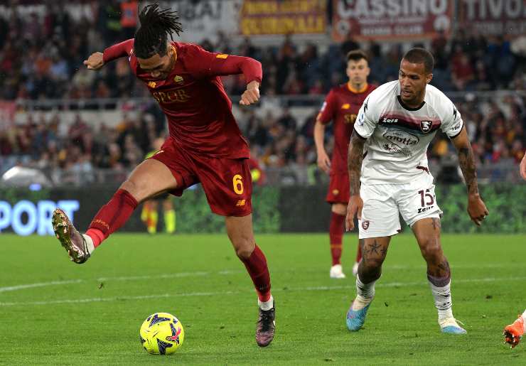 Chris Smalling in campo con la Roma contro la Salernitana – foto ANSA – StadioNews.it