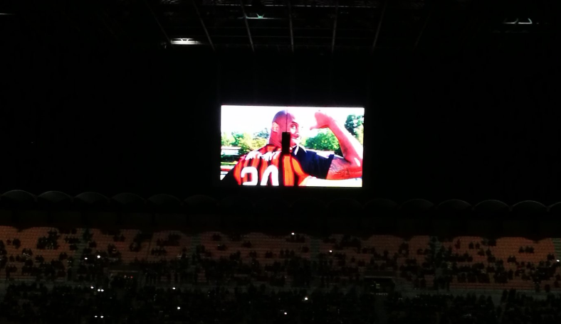 Era un grande tifoso dei rossoneri e il Milan ha deciso di omaggiarlo nel suo tempio. Dopo la morte di Kobe Bryant (scomparso in un incidente aereo insieme alla figlia e altre 7 persone) il club ne ha ricordato la figura indossando il lutto al braccio in Coppa Italia contro il Torino, ma soprattutto celebrando il campione con un tributo prepartita da brividi.