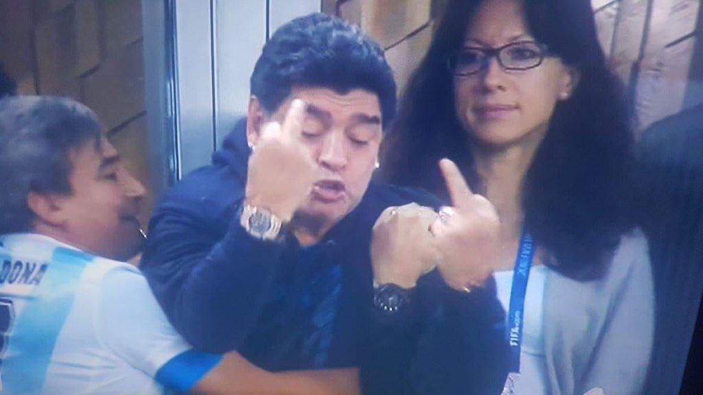 Maradona sfrenato: dito medio, insulti e un lieve malore in Nigeria – Argentina / FOTO