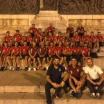 Una foto di gruppo a Piazza Vittorio Veneto davanti al Monumento ai caduti, poi tutti a cena prima della sfida più importante della stagione per la formazione ragusana, neopromossa in Serie D e subito pronta a sfidare la squadra più importante di questo campionato.