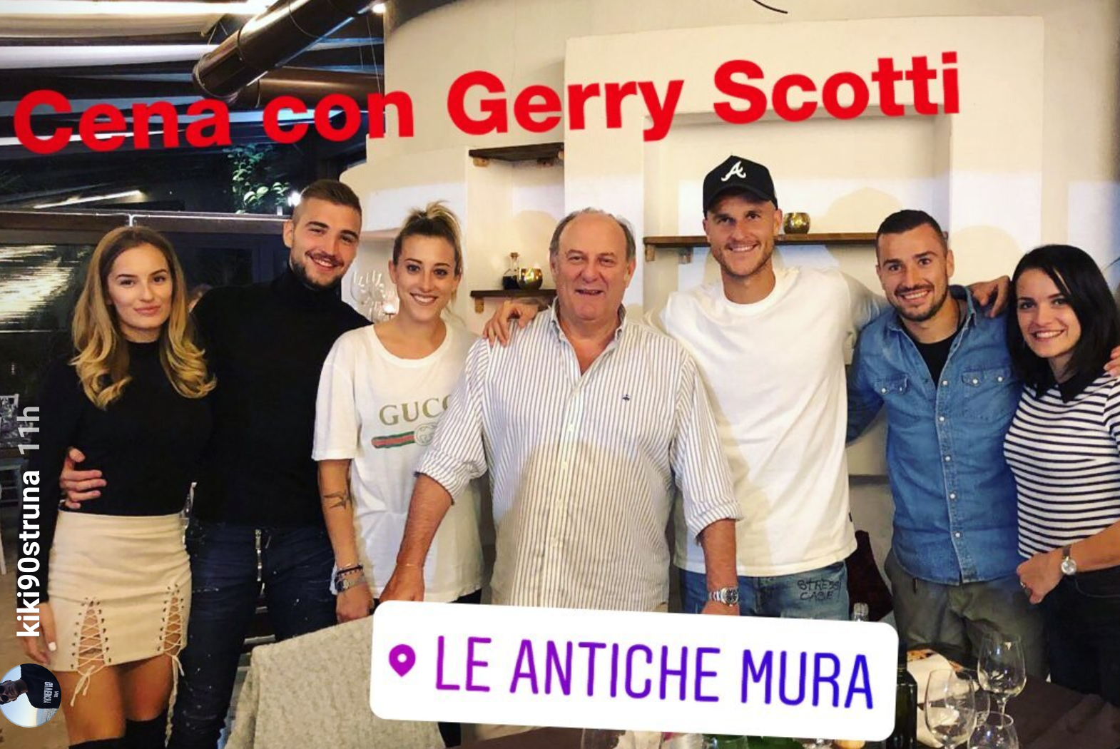 Vicino al loro tavolo era seduto un “bomber” della televisione italiana, Gerry Scotti, grande appassionato di calcio che alla richiesta di una foto non deve averci pensato due volte. Ecco lo scatto postato su Instagram da Struna: