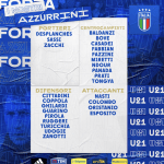 La Nazionale Under 21 si radunerà nella serata di domenica 3 settembre al “Centro di preparazione Olimpica” di Tirrenia e, dal giorno successivo, inizierà a preparare il doppio confronto. Contro la Lettonia si gioca l’8 settembre (ore 16 italiane); contro la Turchia il 12 settembre (ore 18.30 italiane).