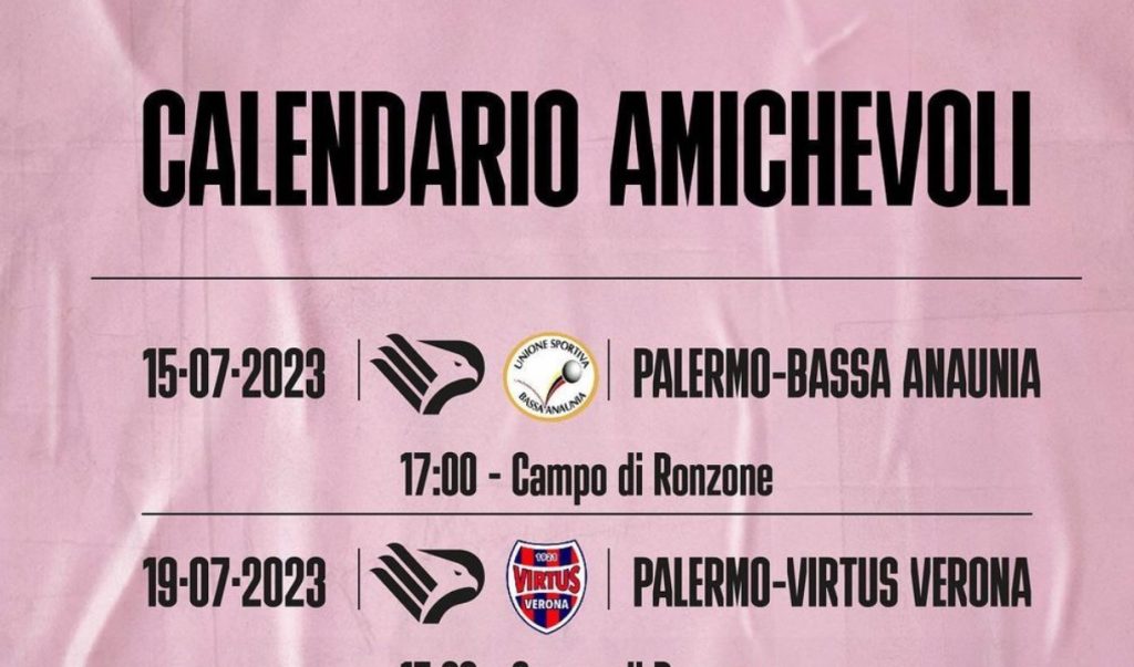Tutte le date e gli incontri amichevoli del Palermo in questo precampionato. Dati che ha condiviso la società rosanero attraverso un post sul proprio profilo Instagram.
