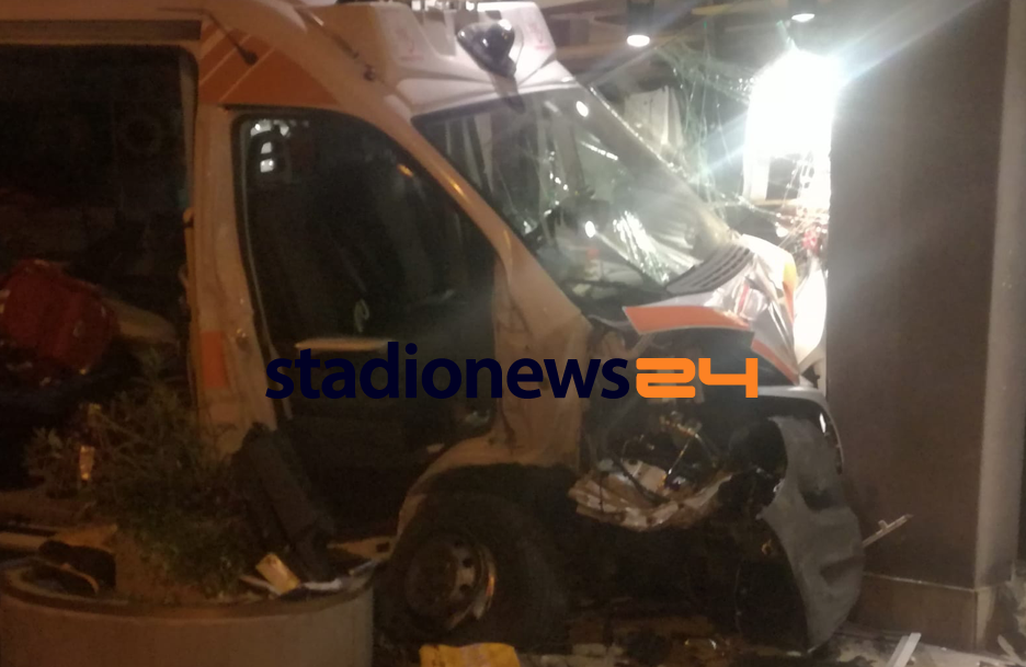 Un’ambulanza (che viaggiava lungo Via Duca della verdura scendendo verso il Porto) si è scontrata con un’Alfa Romeo e ha finito la sua corsa sfondando la vetrina di un negozio che si trova all’angolo: le cause dell’incidente saranno oggetto di accertamento della polizia stradale. Sull’asfalto ci sono i segni di una brusca frenata.