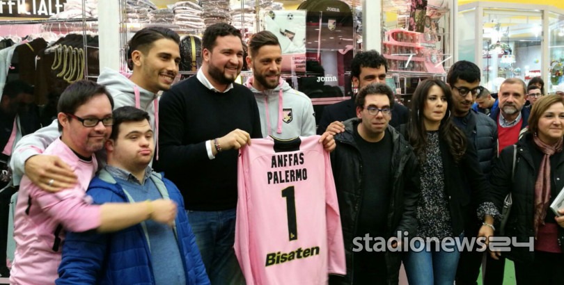 Andrea Rispoli ed Edoardo Goldaniga ospiti allo store ufficiale rosanero del Conca d’oro. I due rosanero hanno consegnato una maglia all’Onlus Anffas, che si occupa di persone affette da disabilità.