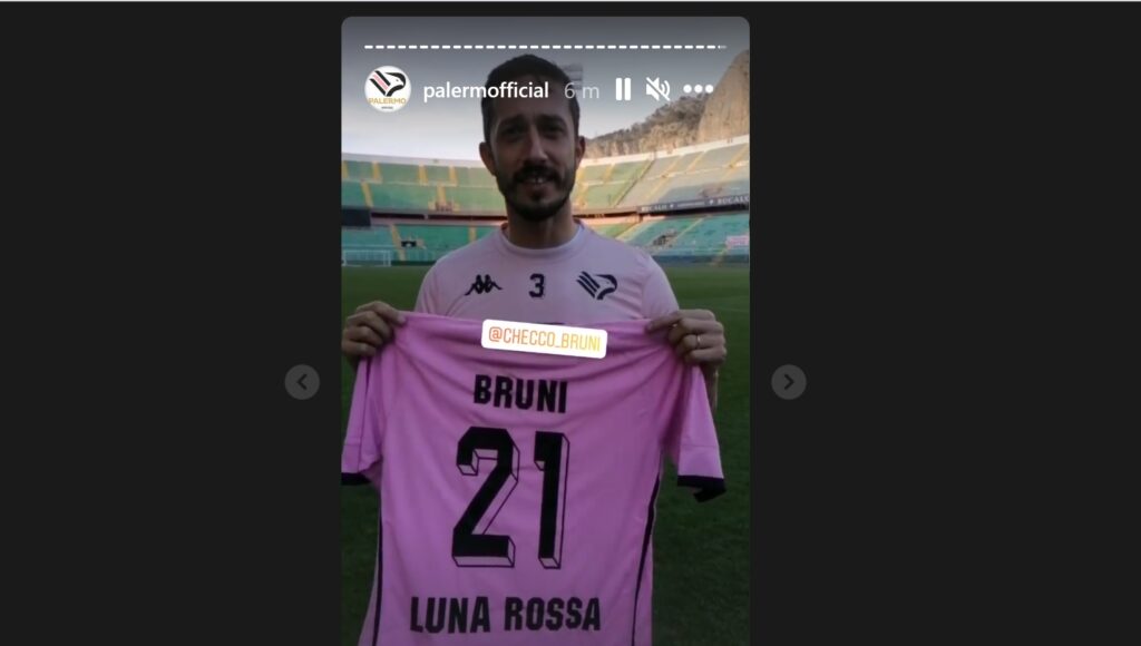 Nel messaggio rosa diretto a Checco Bruni con apposito tag, l’attaccante Saraniti mostra la maglia del Palermo con il suo nome e il numero 21 e augura il meglio per la gara: “Ciao Checco, io sono Andrea Saraniti. Questa maglia aspetta te. So che sei un bomber rosanero e auguro un grandissimo in bocca al lupo a te e Luna Rossa. Forza Palermo”, le sue parole.